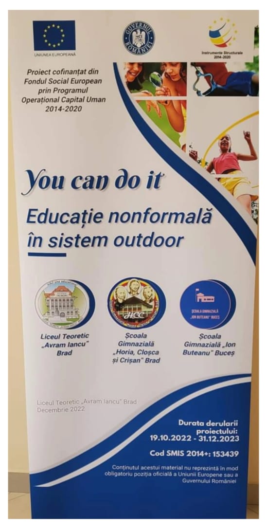 "You can do it" - educație nonformală în sistem outdoor -perioada de derulare 19.10.2022-21.12.2023. Obiectivul general al proiectului este ,,creșterea ratei de participare la educație pentru 330 de elevi din trei școli partenere: Liceul Teoretic "Avram Iancu " Brad, Școala Gimnazială "Horia, Cloșca și Crișan" și Școala Gimnazială "Ion Buteanu" Buceș.